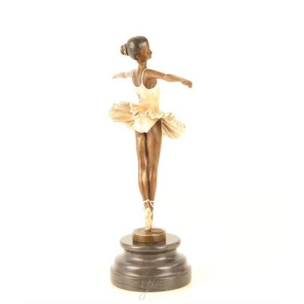 Dit prachtige bronzen beeldje van een ballerina is met de hand gemaakt. Door zijn mooie kleuren en zeer gedetailleerde uitvoering is dit een bijzonder beeld en een echte eyecatcher in je huis.