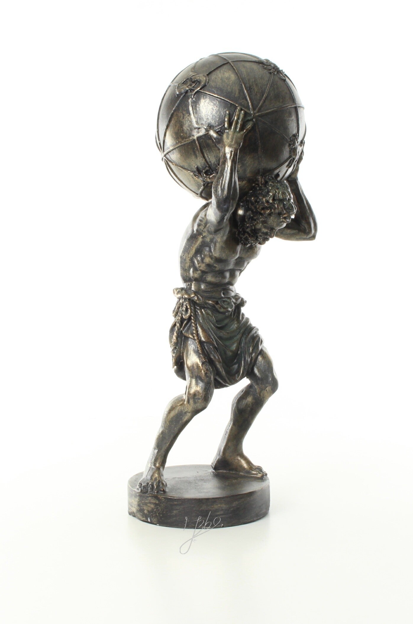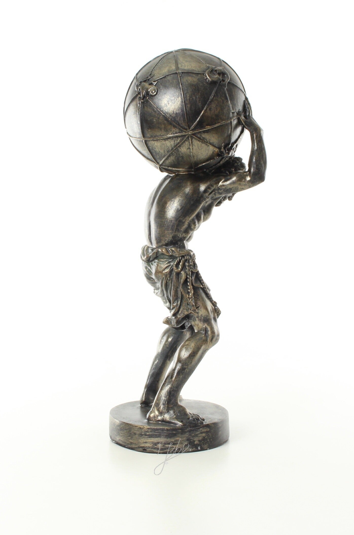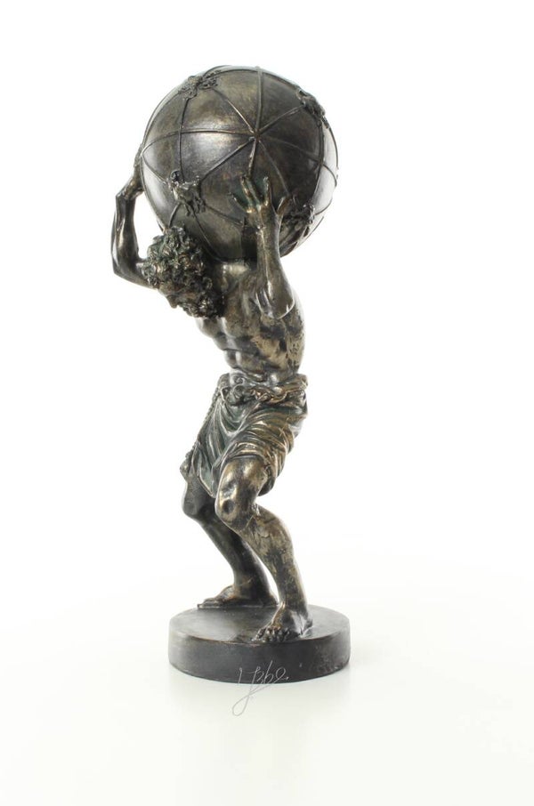 De "Atlas van Farnese" is een van oorsprong Romeins beeld van Atlas, knielend onder het gewicht van de hemelbol. Deze prachtige reproduktie is gemaakt van resin en heeft de volgende afmetingen: 16,4x15,5x41,9cm.
