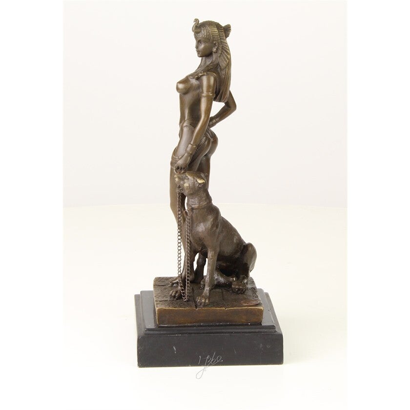 Een werkelijk prachtig bronzen beeld van Cleopatra met een panter. Het is zeer gedetailleerd uitgevoerd met oog voor detail. Met dit beeld heb je echt iets heel bijzonders in huis!