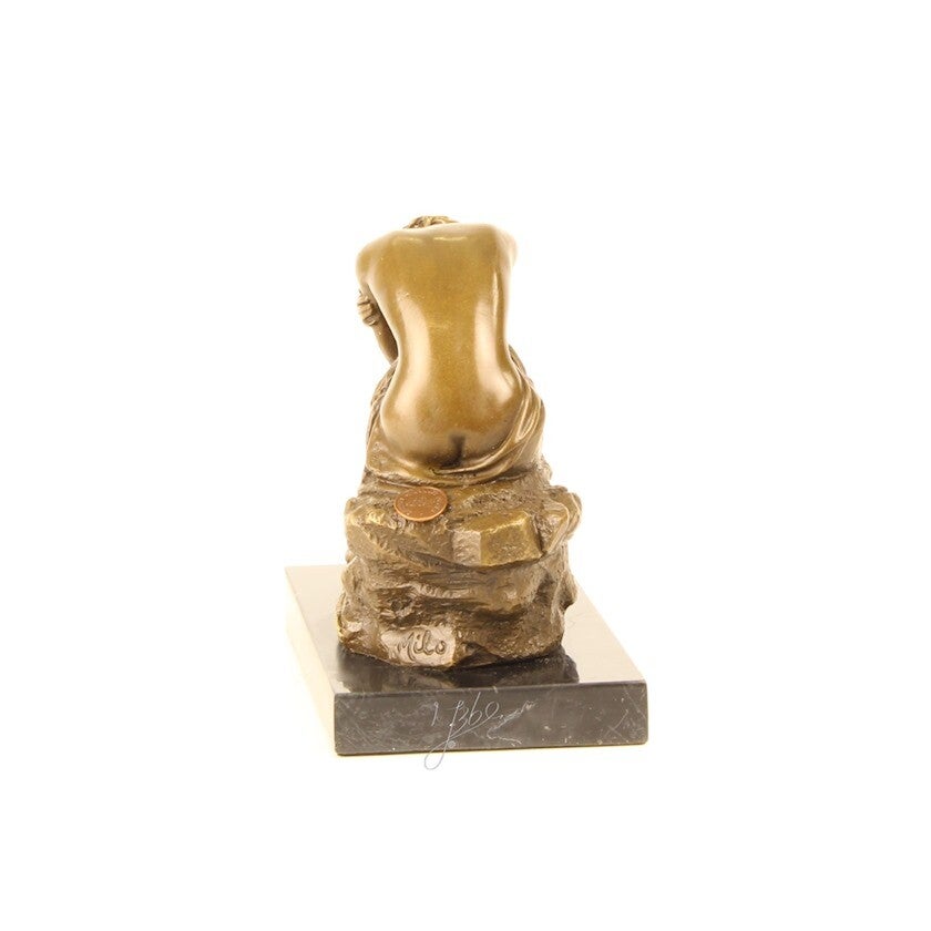 Prachtig bronzen beeldje van een slapende vrouw. Het beeldje staat op een voet van natuursteen en is zeer gedetailleerd uitgevoerd met oog voor detail. Afmetingen: 16,2x9,1x15cm (lxbxh)