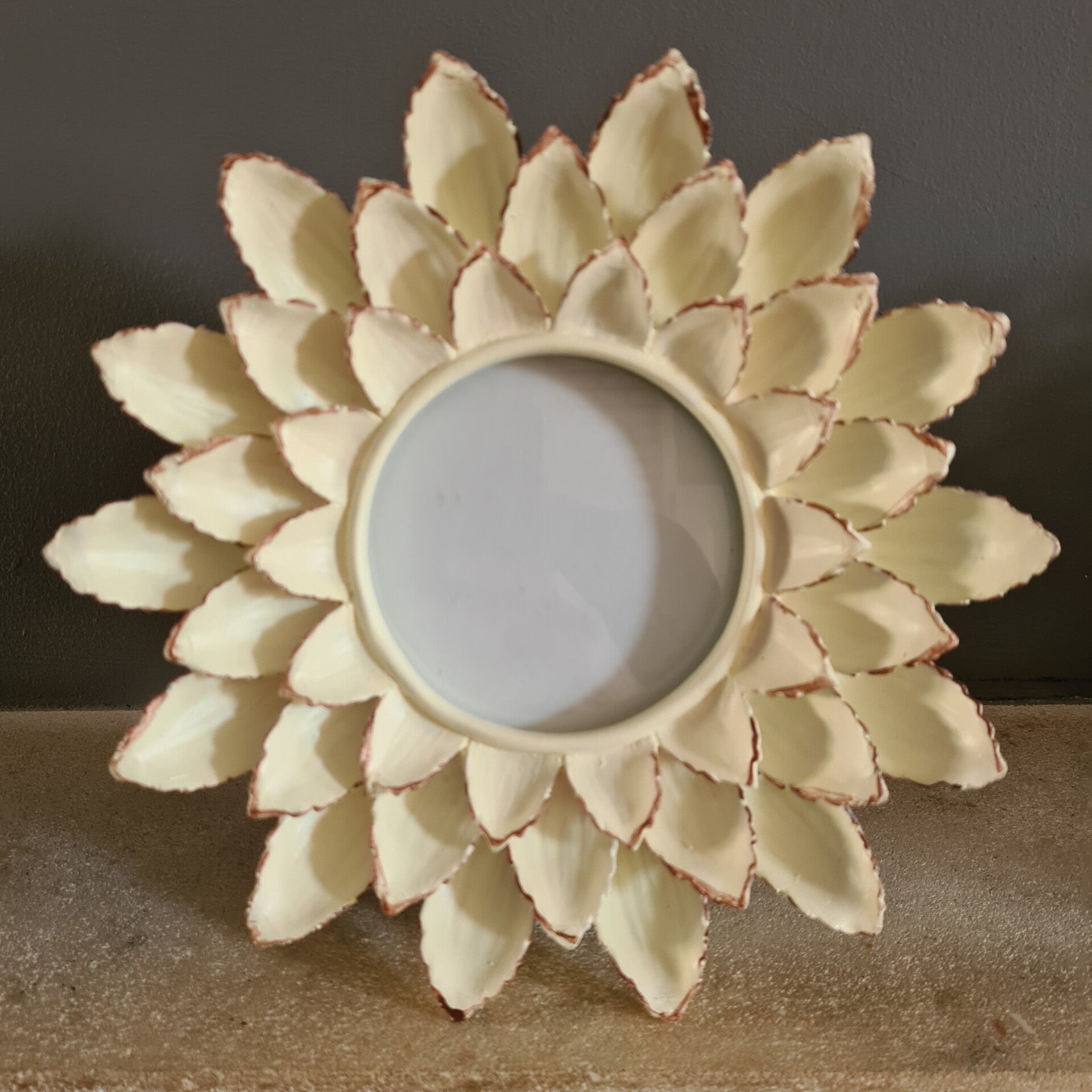Dit mooie ronde fotolijstje is gemaakt van polyresin en heeft een mooie ivoorwitte kleur. Het glas zorgt ervoor dat je dierbare foto goed wordt beschermd. De lijst is geschikt voor een foto van 10x10cm.
