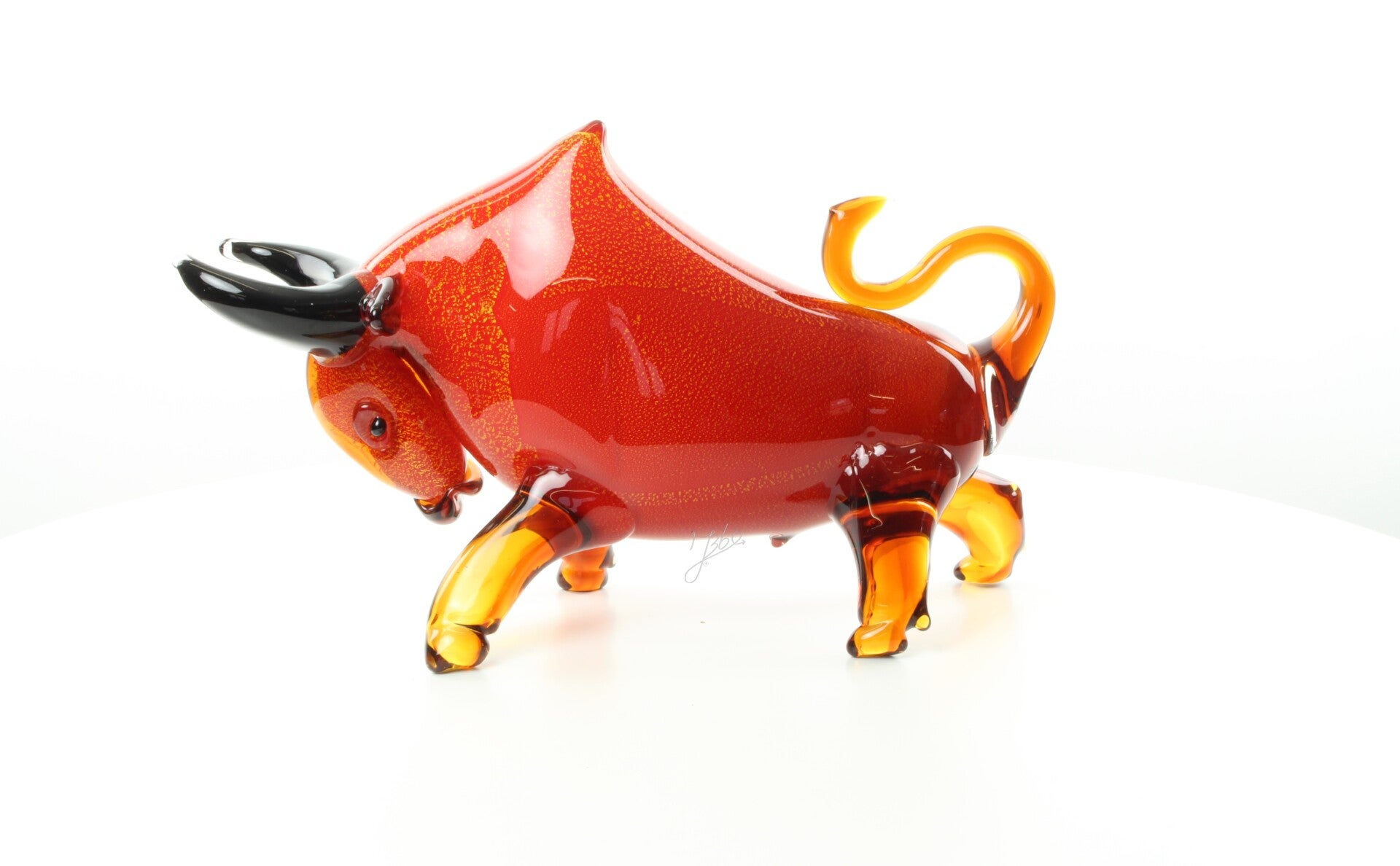Prachtig beeldje van een rode stier in Murano stijl en geïnspireerd op het beroemde Murano glas uit Italië. Het beeldje is met hand geblazen waardoor elk beeldje uniek is.